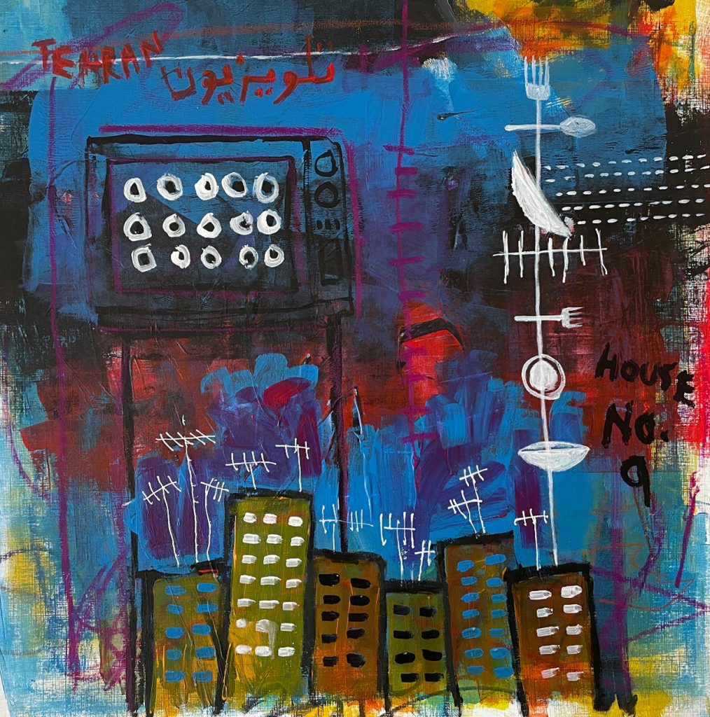 Tehran – 2021’s Collections – Tehran 1978 – Acrylic, Oil Pastel and Colour Pencils on Acrylic Paper 40cm x 40cm